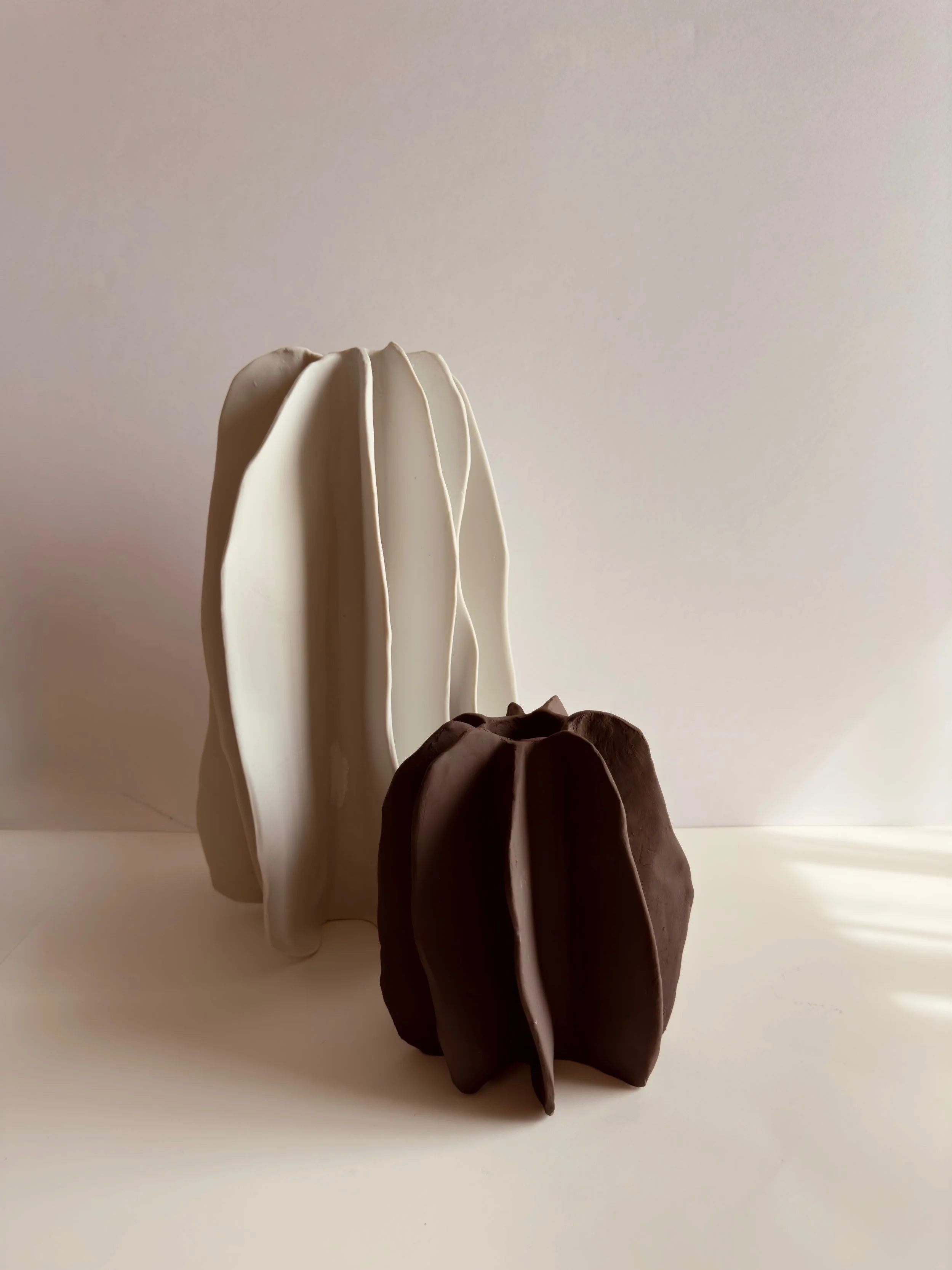 I make one-of-a-kind sculptural works at a human scale, created through risk, experimentation and material forces that cannot be repeated. Working in an abandoned factory in southern Sweden, each piece is a singular outcome of gravity, timing, and experimentation.